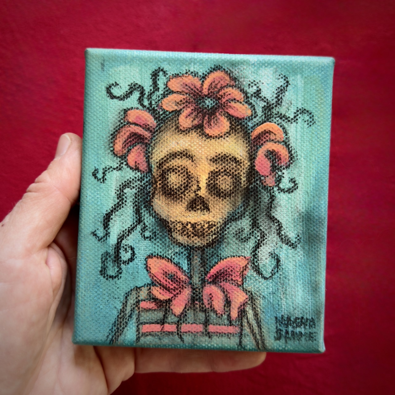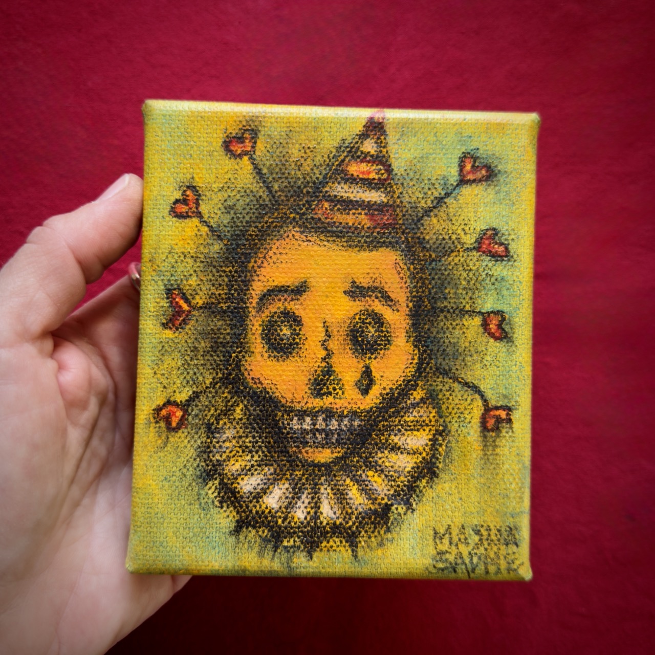 Маша много рисовала уже с 2 лет и на протяжении всей жизни училась этому самостоятельно. Занятия музыкой и живописью всегда шли параллельно. В 30 лет закончила школу академического рисунка и живописи. В 2020 году организовала свой бренд Masha SadMe Art.