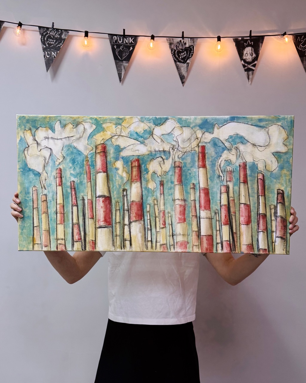 “Мои работы направлены на исследование взаимоотношений окружающего и внутреннего мира через страхи и искажения, самоиронию, юмор и сарказм.”